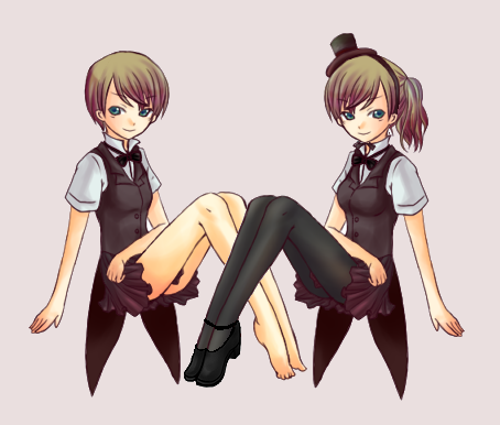 着せ替えでミニハット被せたり、髪形変えたり、おっぱいのサイズ変えたり、生足・ストッキング・ニーソックスの三種が選べたり、靴履かせたりします。